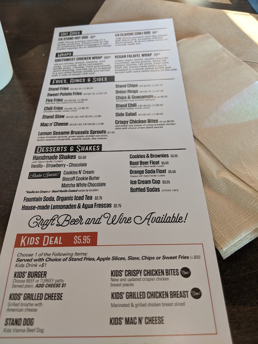 “ The Stand is by far my favorite burger. If I could I’d give them another 5 stars for their generosity towards local elementary school. They’ve setup give back days for our school and even provided coupons for free kids meals which students get rewarded with if they are recognized for good behavior. ”